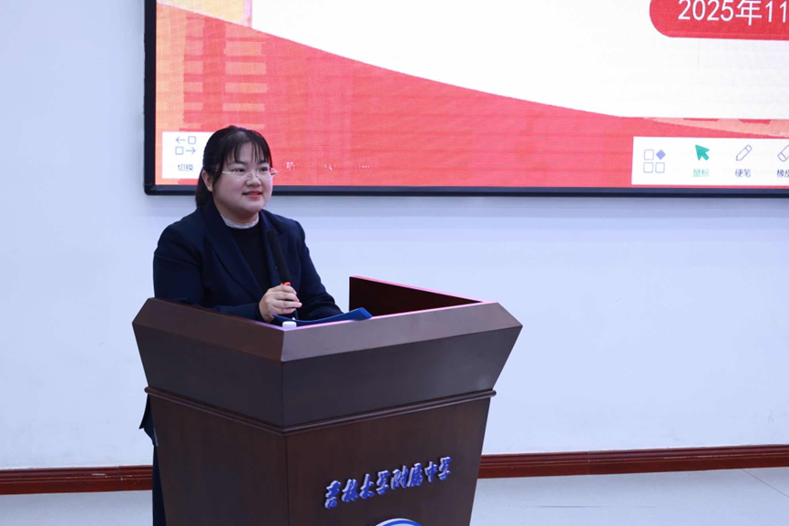 宣讲尾声,吉林大学附属中学团委书记姚悦作总结致辞。她感谢姜宇航同学重返母校传经送宝,并高度肯定了本次团课的教育意义与实践价值。姚书记指出,姜宇航的分享是一次温暖而有力的榜样传递,从附中走出的学子带着成长与光芒回馈母校,不仅展现了优秀风采与责任担当,更在同学们心中播下了“感恩回馈、接力奋斗”的种子。这种校际联动、学子反哺的“双向奔赴”,既是情感的共鸣,也是精神的桥梁,更是红色基因与青春力量的薪火相传。